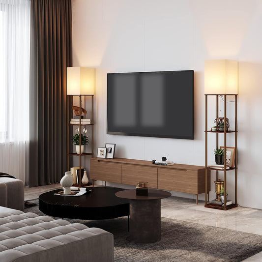 Floor Lamp with Shelves, Modern Square Standing Lamp with 3 Color Temperature Bulb, Corner Display Bookshelf Lamp for Living Room and Bedroom(Black)