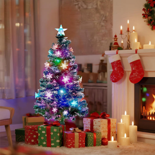 Illuminate Your Holidays with the Stunning Prsildan 3 FT Pre-Lit Optical Fiber Christmas Tree Featuring Multicolor LED Lights and Charming Snowflakes